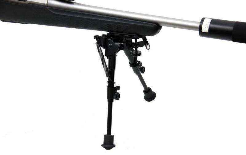At the bottom of each leg is a solid rubber foot. It also has a swivel head which allows you to keep the cross hair level when shooting on the side of the hill or in undulating country. Once you have used a bipod, especially one with the swivel head like this, you will always use one for the best accuracy.Â
