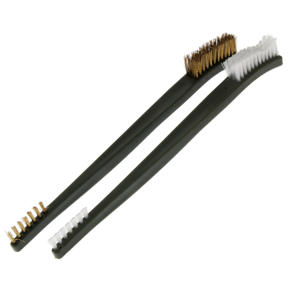 This 6-piece set features 2 brushes – bronze for hard surface and