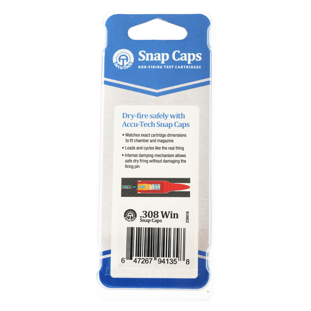 Loads and cycles like the real thing, each Accu-Tech Snap Caps Non-Firing Test Cartridge is designed to match the exact cartridge dimensions to fit in the chamber and magazine. Internal damping mechanism allows safe dry firing without damning the firing pin.